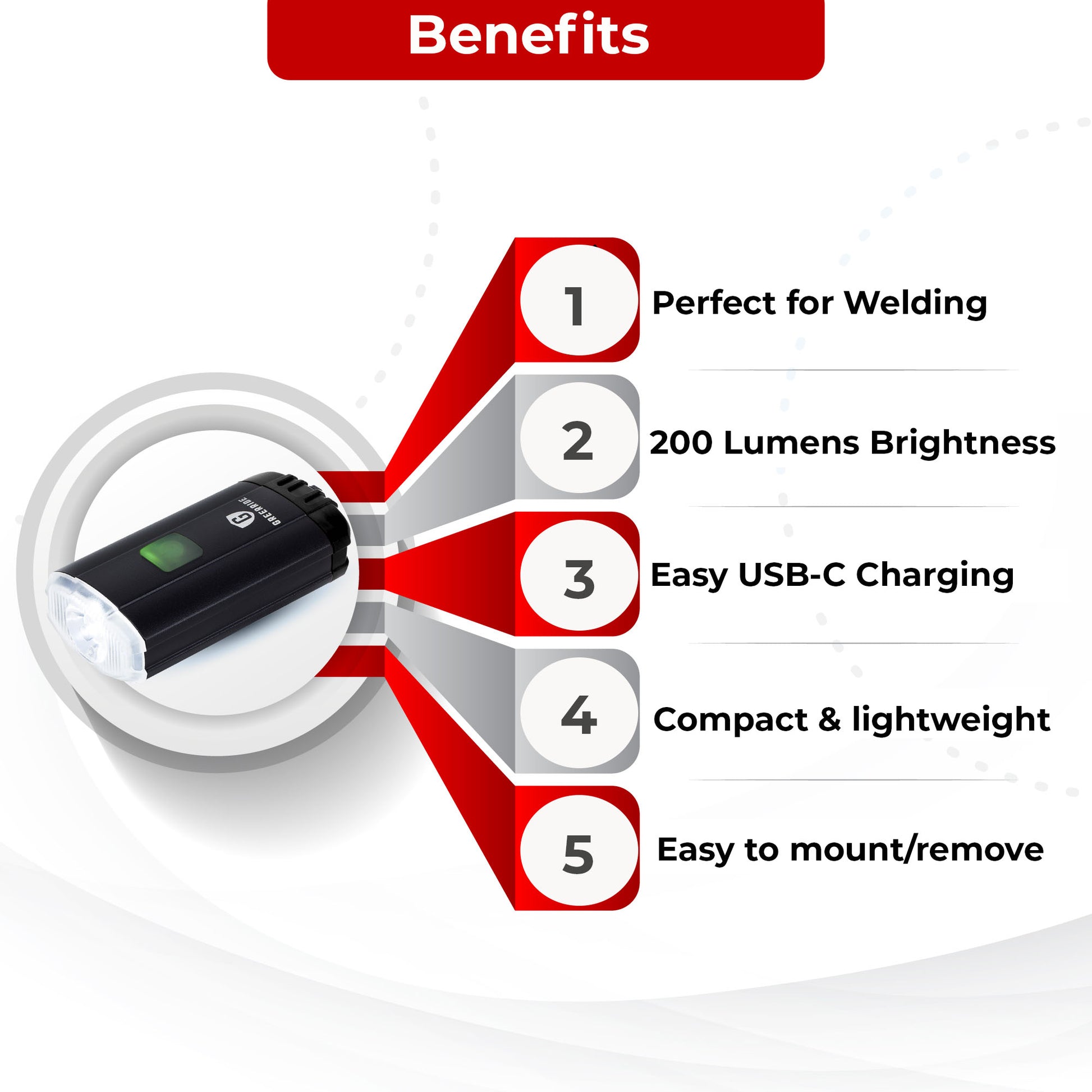 Compact, Rechargeable LED Light Designed To Improve Welding Visibility For TIG, MIG, Stick & Flux-Core Work.